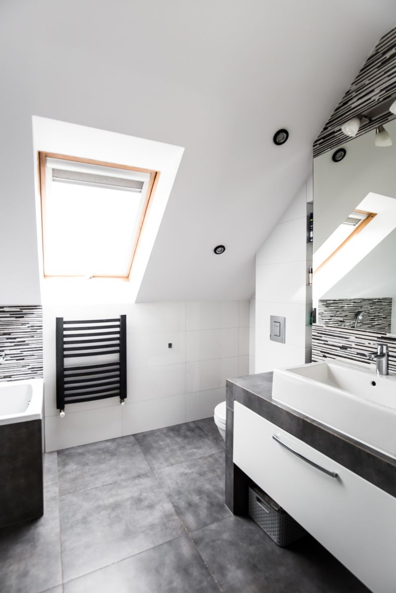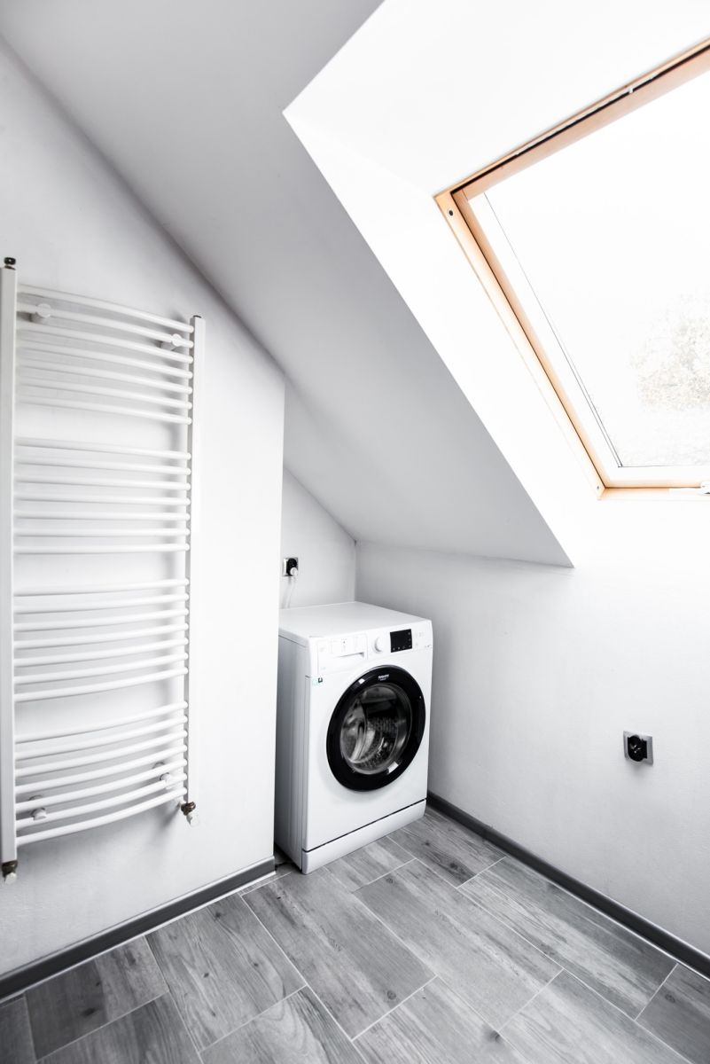- pralnia, funkcjonalna łazienka na piętrze i toaleta na parterze,