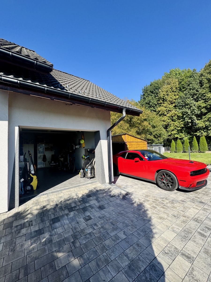 W bryle budynku znajduje się garaż (20 m²), a dodatkowo na posesji ustawiono blaszak z dwoma miejscami postojowymi. Dom został oddany do użytkowania w 2016 roku. Gotowy do wprowadzenia bez dodatkowych nakładów.