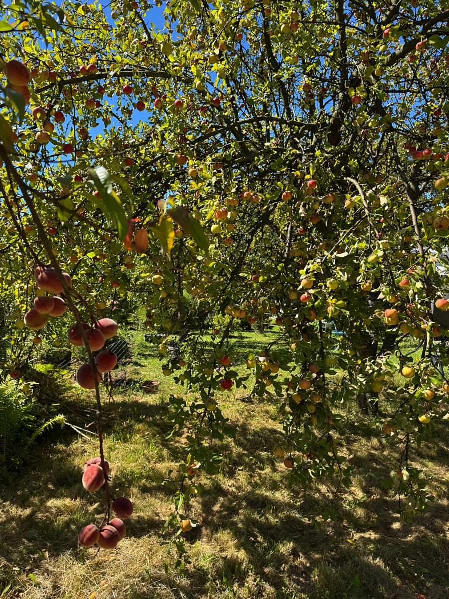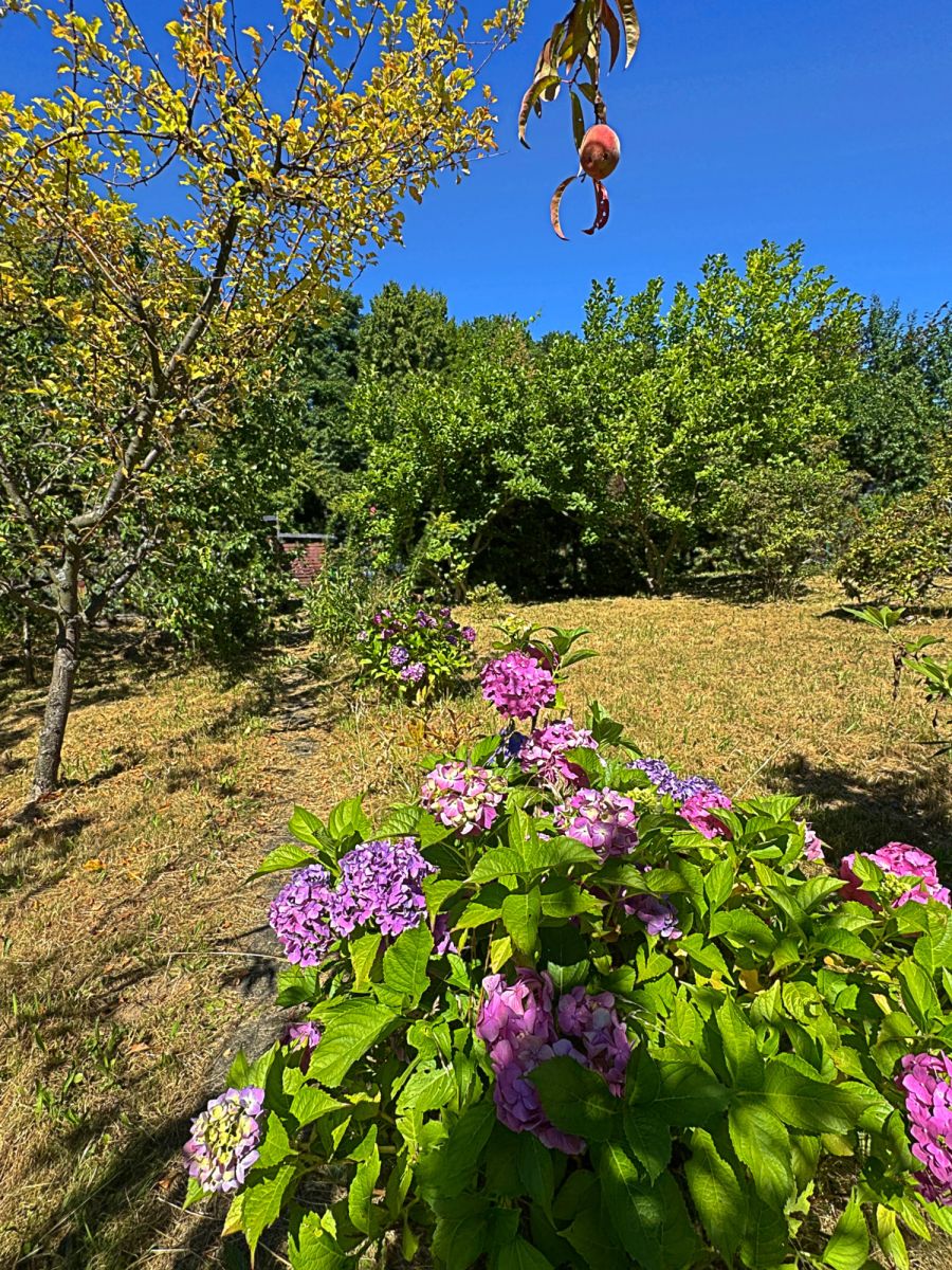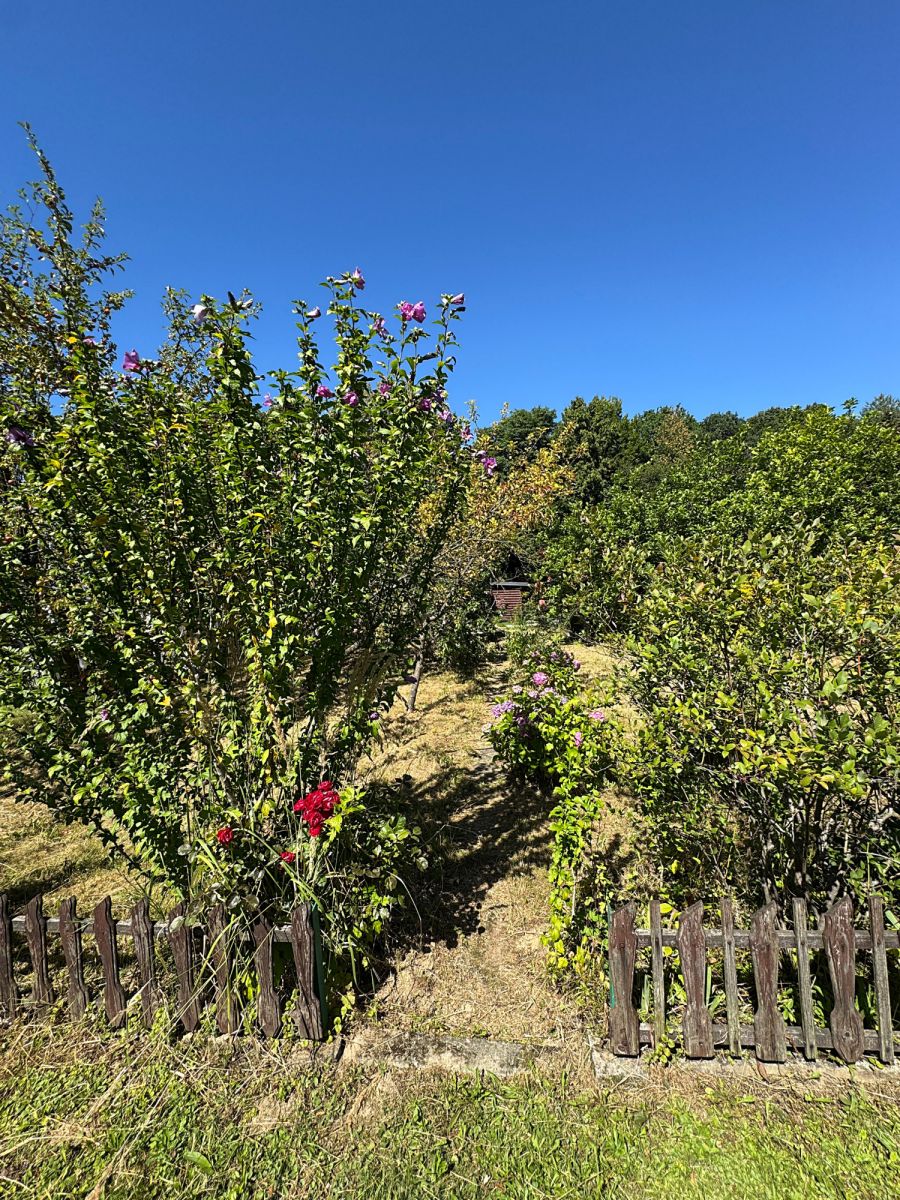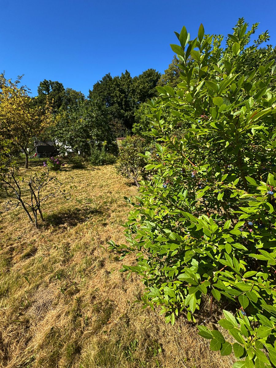 Na działce rosną liczne drzewa owocowe, krzewy i ozdobne kwiaty, które tworzą przyjemny cień w upalne dni i nadają całości wyjątkowego klimatu. Wydzielono również miejsce pod basen - świetne rozwiązanie na letnie popołudnia.