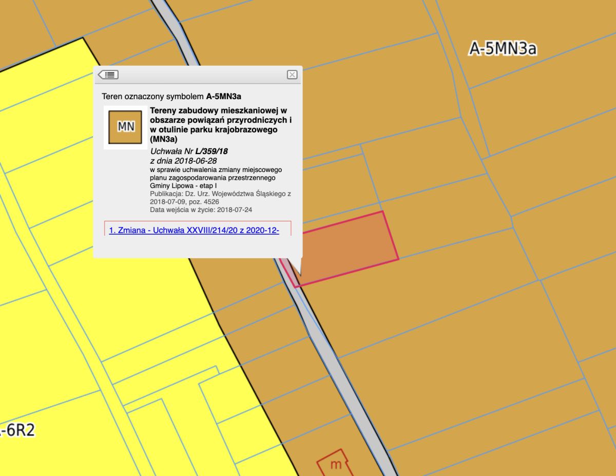- dopuszczalne: garaże, budynki gospodarcze, miejsca postojowe, infrastruktura techniczna