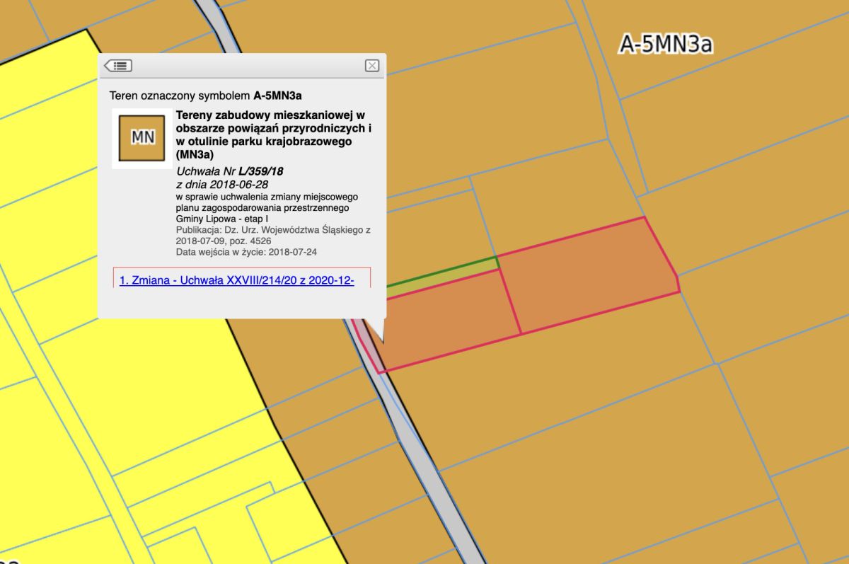 - dopuszczalne: garaże, budynki gospodarcze, miejsca postojowe, infrastruktura techniczna