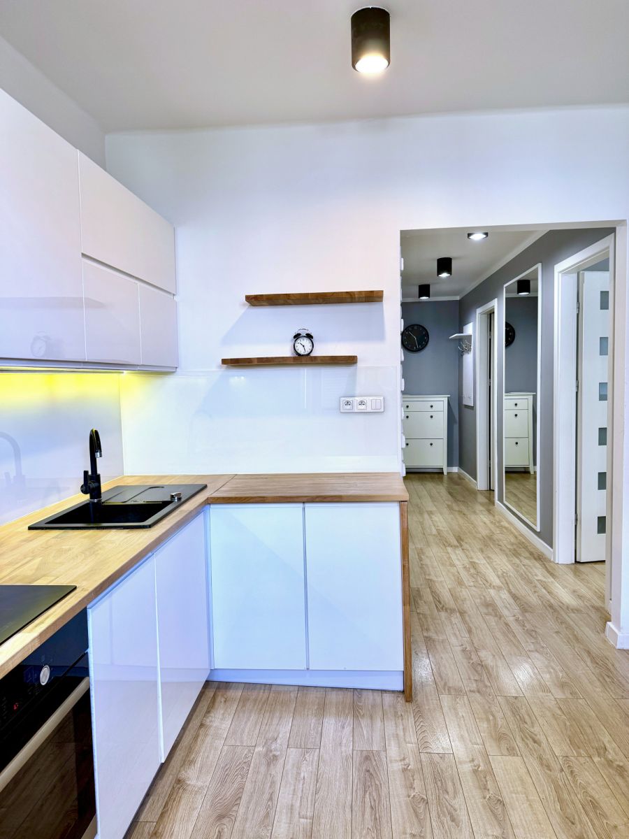 Mieszkanie jest bardzo dobrze utrzymane, czyste i wykończone z dbałością o detale. Wnętrze zostało wyposażone w dobrej jakości sprzęt oraz funkcjonalne zabudowy meblowe, dzięki czemu jest gotowe do zamieszkania bez konieczności dodatkowych nakładów.