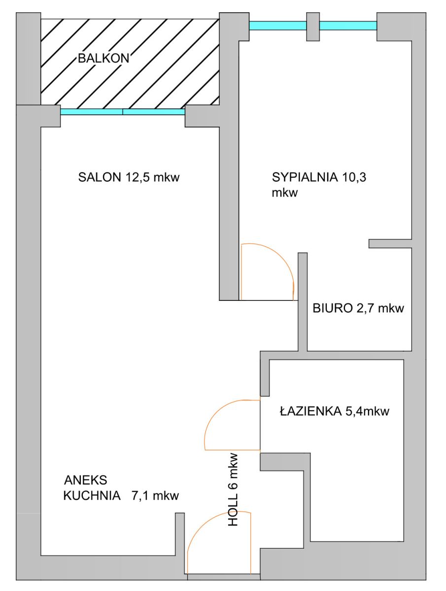 - salon z aneksem kuchennym i wyjściem na balkon / loggię,